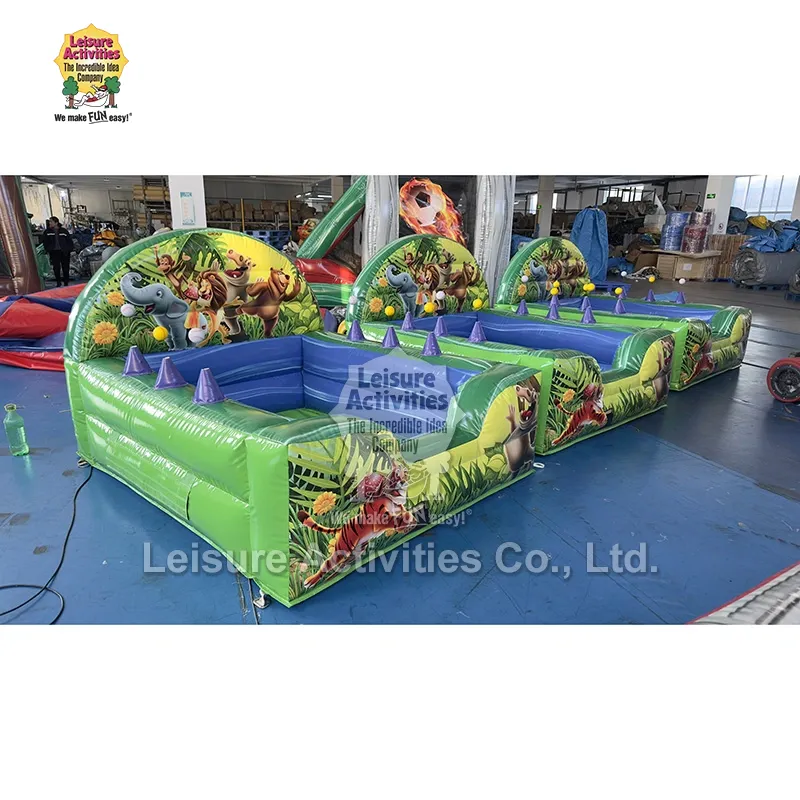 గాలితో కూడిన ఉత్పత్తుల యొక్క వృత్తిపరమైన తయారీదారు మరియు సరఫరాదారుగా, లీజర్ యాక్టివిటీస్® ఇటీవల గాలి జగ్లర్‌లతో గాలితో కూడిన జంగిల్ బాల్ పూల్‌ను ప్రారంభించింది, ఇది జంతువుల నేపథ్యం గల జంగిల్ థీమ్‌తో పిల్లల కోసం ప్రత్యేకమైన గాలితో కూడిన బాల్ పూల్. ఇది ఎయిర్ గారడీ ఫంక్షన్‌ను కలిగి ఉంది, ఎలుగుబంట్లు మరియు అడవి జంతువుల కార్టూన్ చిత్రాలతో ముద్రించబడింది, సురక్షితంగా మరియు మృదువుగా ఉంటుంది, అత్యుత్తమ రూపాన్ని కలిగి ఉంటుంది మరియు ఆచరణాత్మకతతో వినోదాన్ని మిళితం చేస్తుంది.