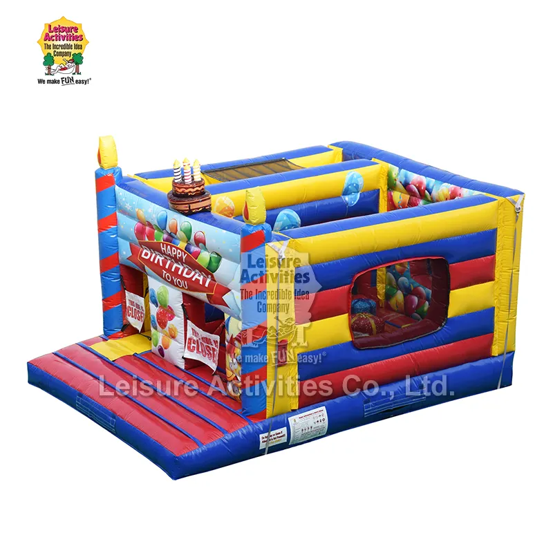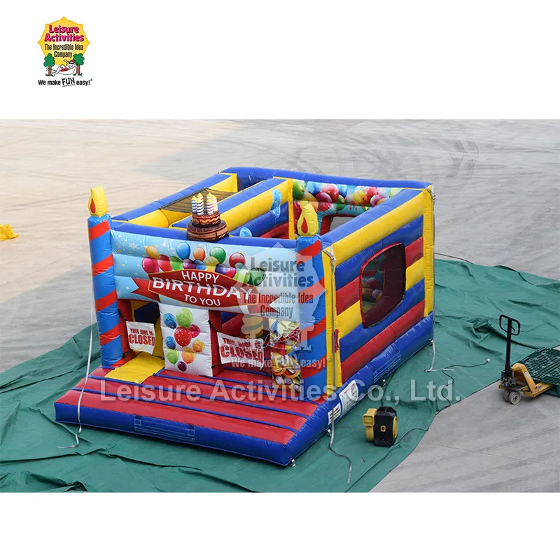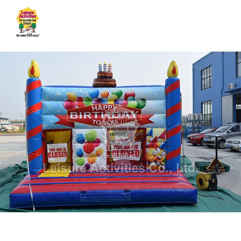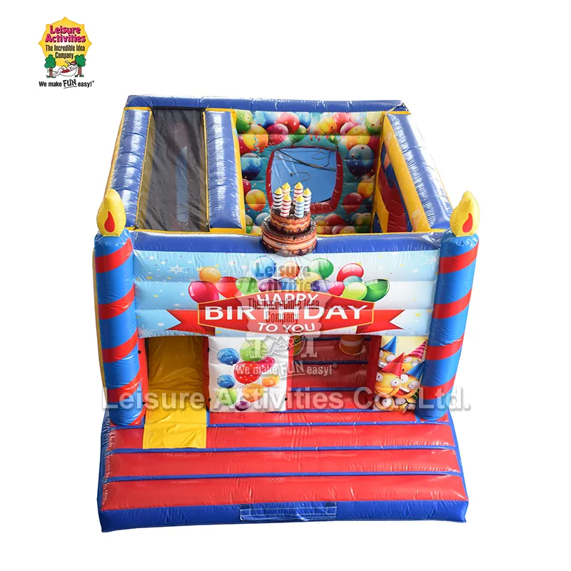 లీజర్ యాక్టివిటీస్ ® అనేది గాలితో కూడిన పరిశ్రమలో 30 సంవత్సరాల అనుభవంతో చైనాలో ఒక ప్రొఫెషనల్ గాలితో కూడిన ఉత్పత్తి తయారీదారు మరియు సరఫరాదారు. స్టాండర్డ్ ఇన్‌ఫ్లేటబుల్ మల్టీప్లే బౌన్సీ కాజిల్స్ హ్యాపీ బర్త్‌డే స్వతంత్రంగా మాచే అభివృద్ధి చేయబడింది మరియు ఉత్పత్తి చేయబడింది. ఇది రంగురంగుల పుట్టినరోజు థీమ్ డిజైన్ చుట్టూ కేంద్రీకృతమై ఉంది, భద్రత మరియు వినోదం రెండింటినీ పరిగణనలోకి తీసుకుంటుంది మరియు వివిధ పుట్టినరోజు పార్టీలు మరియు పిల్లల కార్యకలాపాల కోసం ప్రత్యేకంగా రూపొందించబడింది.